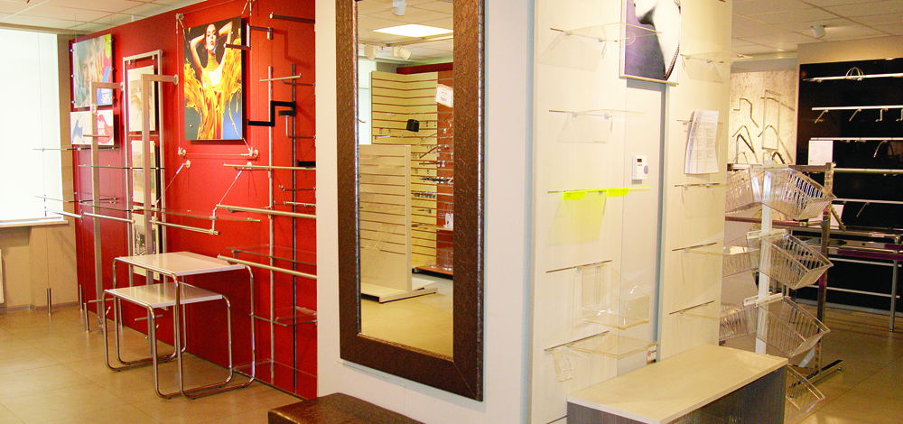 В нашем выставочном зале, представлены образцы торговых систем, прилавков, витрин, вешал, плечиков, зеркал, банкеток. Также вы найдёте здесь более 700 моделей манекенов, образцы материалов и многое другое.