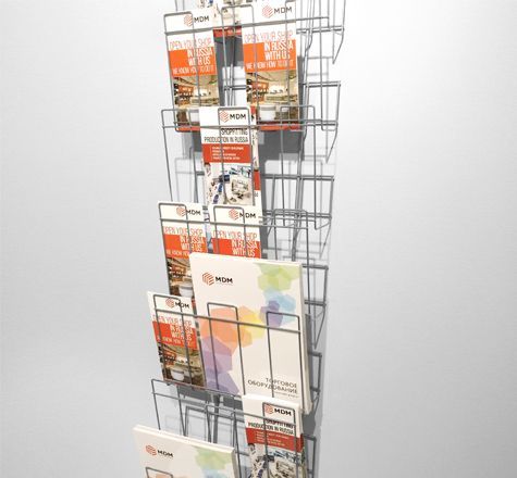 Карманы для печатной продукции имеют разные форматы, что позволяет использовать буклетницы практически под любой вид полиграфии. Карманы А5 подойдут для открыток и небольших брошюр. В ячейки А4 размещают самую разную печатную продукцию: книги, журналы, каталоги и альбомы. Буклетница А3 формата подойдет для больших журналов и газет.
