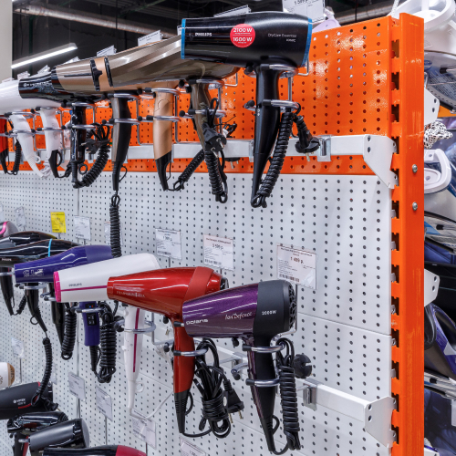Для разных типов продукции используется различная навеска. Практически каждый кронштейн имеет специальный ценникодержатель, на который вывешивается цена и описание изделия.