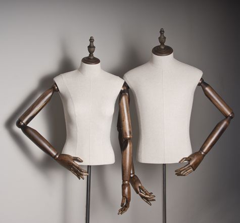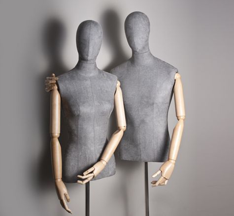 Манекены обтянуты тканью и имеют деревянные руки с шарнирным механизмом. Благодаря шарнирному механизму руки можно фиксировать в различных положениях. Вы с легкостью можете придать манекену неповторимую позу и создать интересную композицию из нескольких манекенов. При этом вы можете использовать как мужские, так и женские манекены с деревянными руками, а также торсы с головой и без головы.