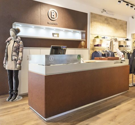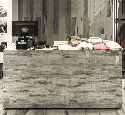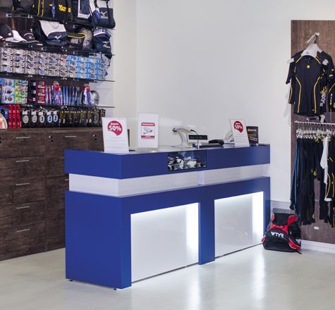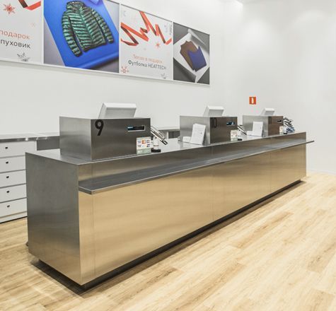 Стойки ресепшн для магазина представляют собой высокие столы, располагаемые вдоль стены торгового зала с проходом для продавца или кассира позади. Передняя часть такого стола прилавка при этом может быть стеклянной и выполнять функции витрины и использоваться для демонстрации аксессуаров. Стойки ресепшн часто называются кассовыми столами, так как практически всегда используются для размещения кассы.