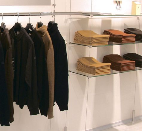 Применение тросовых систем в качестве торгового оборудования делает интерьер магазина лёгким, воздушным и придаёт помещению дополнительный объём.