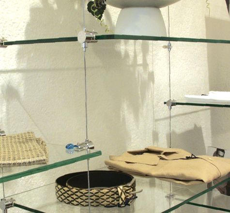 Используется как тросовая система для стекла (стеклянных полок). Основа системы — стальной трос диаметром 2 мм, на который с помощью разнообразных элементов можно крепить полки, витрины и декоративные конструкции. Элементы, входящие в состав тросовой системы, позволяют крепить конструкции под необходимым углом, что открывает дополнительные возможности в использовании системы, например, в качестве информационных указателей и рекламных дисплеев.