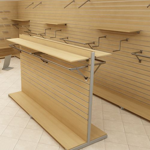 Экономпанели для магазина – это специальные панели МДФ с фрезерованными пазами, на которые вывешиваются навесные элементы. Экономпанель ламинирована с лицевой стороны декоративной пленкой разных цветов.