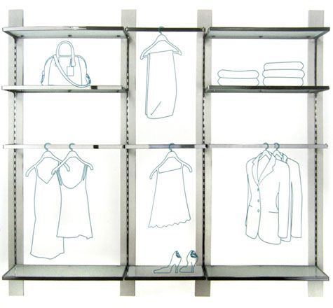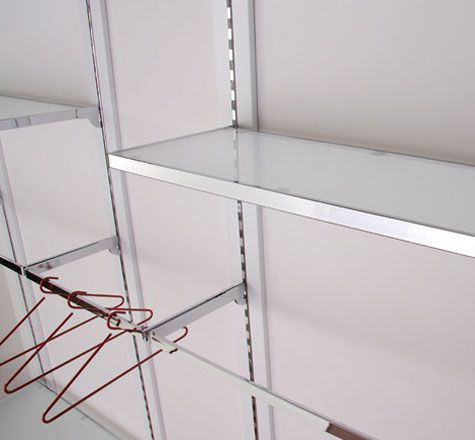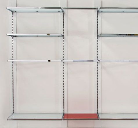 В системе имеются рамы для полок из металлической трубы, благодаря которым обычные полки из ДСП или стекла получают металлическое обрамление, и приобретают особый стиль и легкость.