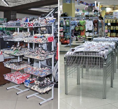 Лёгкие разборные стойки-накопители, корзины для распродаж напольные и корзинные стеллажи одинаково хороши как для торговли в помещениях, так и для выносной уличной торговли. Большой ассортимент, а также универсальность данной серии позволяют оборудовать ею магазины самого разного профиля.