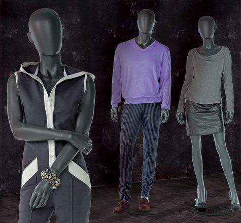 Манекены GREY — это стилизованные мужские и женские манекены из стеклопластика с серым матовым покрытием. Необычный цвет и лаконичные формы манекенов серии GREY обязательно привлекут внимание к демонстрируемой одежде. Подобные манекены пользуются всё большей популярностью в европейских магазинах.