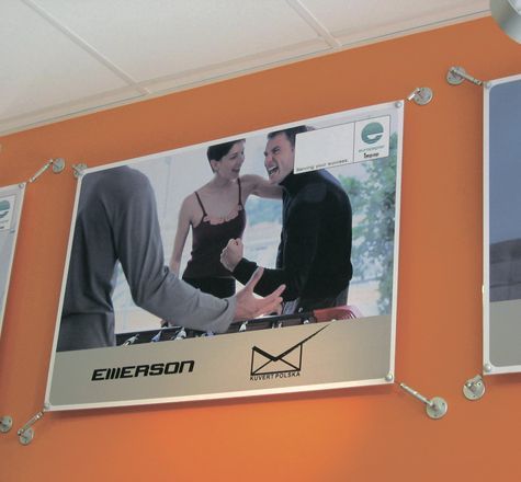 На вертикальных панелях, закреплённых с помощью тросовой системы Mega 3000 Info, очень эффектно смотрятся различные информационные материалы и рекламные постеры.