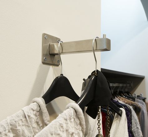 Кронштейны для вешалок настенные позволяют довольно компактно разместить одежду, сохраняя удобство визуального восприятия. Кронштейны выполнены из хромированной стали и обладают высокой прочностью, что позволяет демонстрировать на них большое количество одежды, не переживая за прочность конструкции.