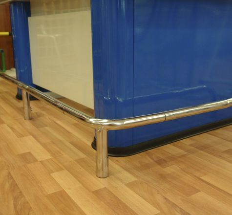 Отбойники предназначены для предохранения торговой мебели в магазинах самообслуживания от ударов тележек. Отбойники устанавливаются, как правило, в супермаркетах рядом с холодильными бонетами, прилавками, витринами и стеллажами.