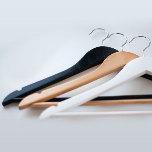 Магазины и бренды представляющие классическую одежду отдают предпочтение именно деревянным вешалкам.