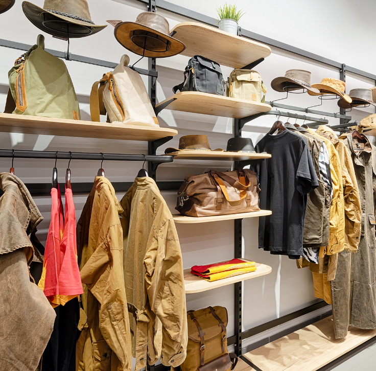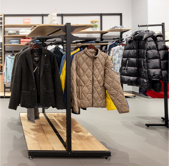 Навесные элементы: штанги из овальной трубы 30х15мм, полкодержатели и соединители стоек.