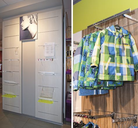 Возможности для дизайна: комбинированные панели, совмещающие в себе как профиль, так и одиночные держатели. Все навесные элементы имеют универсальный зацеп, который подходит к обоим видам крепления.