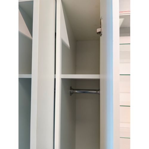 Шкаф оборудован 2 полками из ЛДСП LAMARTY 16 "Белый" стандарт, арт. 11-208-070-002 или аналог и 3 штангами из трубы ф25мм цвета хром.