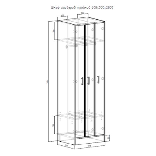 Шкаф гардероб тройной 600х504х2000