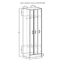 Внутри шкафа вертикальные перегородки ,распашные двери вкладываются в перегородку. Фурнитура – петли для ДСП TITUS или аналог вкладные . Ручка-скоба 96мм, хром матовый. На конфирмантах заглушки в цвет ЛДСП.