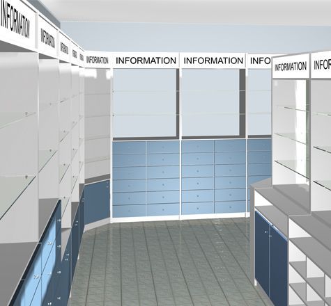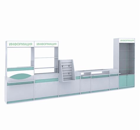 Серия торговой мебели Farma. Элементы этой серии тщательно проработаны и отвечают современным требованиям оснащения аптек и магазинов медицинских товаров.