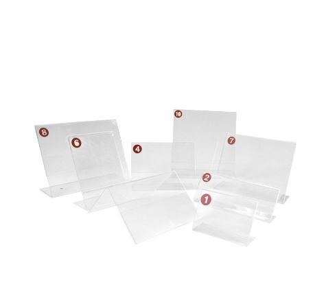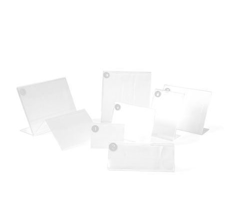 Ценникодержатели настольные – устанавливаются на столы, полки стеллажей и другие горизонтальные поверхности. Имеют различные формы, самые популярные шалаш и L-образная, бывают двусторонние и односторонние в зависимости от места размещения.