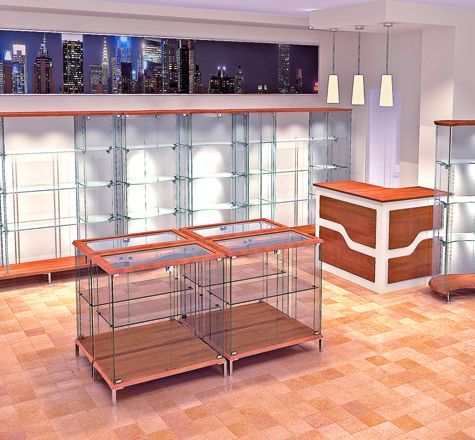 Используемая система полкодержателей позволяет устанавливать галогенные лампы освещения в дополнение к верхнему освещению в витрине.