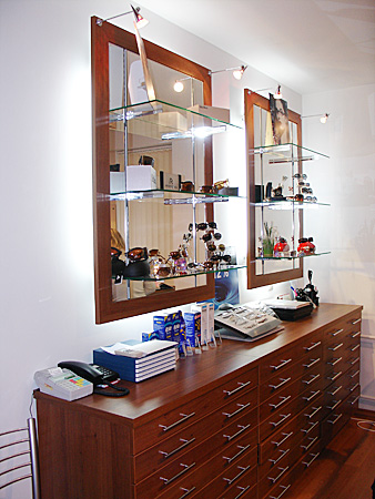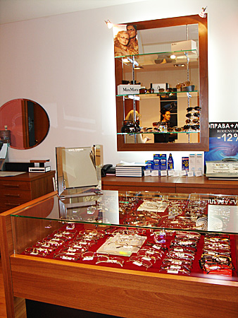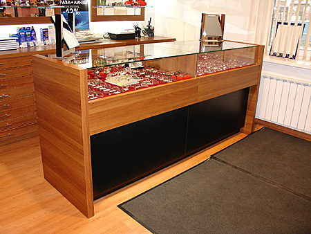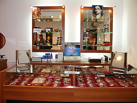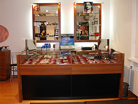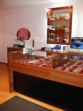 Компания МДМ оборудовала новый магазин очков "Бинооптик" рядом с метро "Варшавская". Проект выполнен на базе стандартной серии торговой мебели "Крео" с витринами серии "Селена". Специфика товара потребовала разработки специального оборудования: тумб с небольшими, полностью выдвигаемыми ящиками, адаптированными под размер очков.