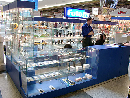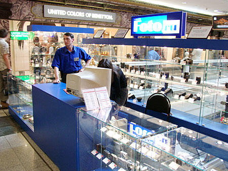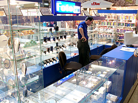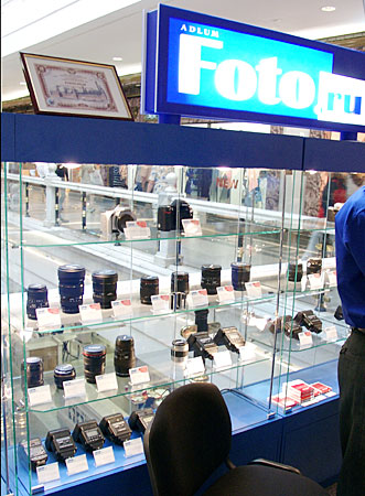 Компания МДМ оборудовала магазин фототоваров "Фото ру". Проект разработан на основе витрин "Селена" с некоторыми изменениями стандартных размеров под заказчика.